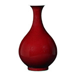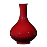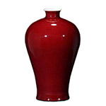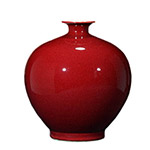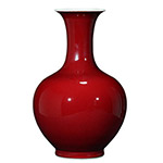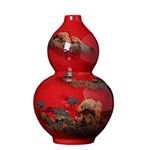 Red landscape ceramic vases and ornaments on kitchen window sills